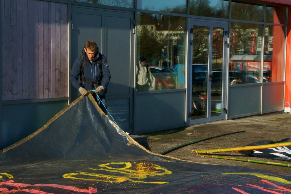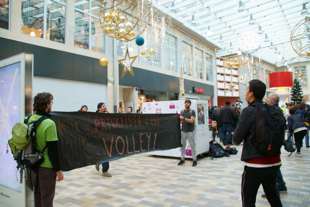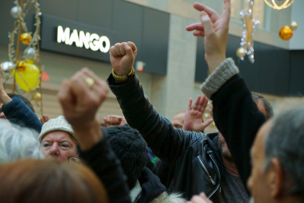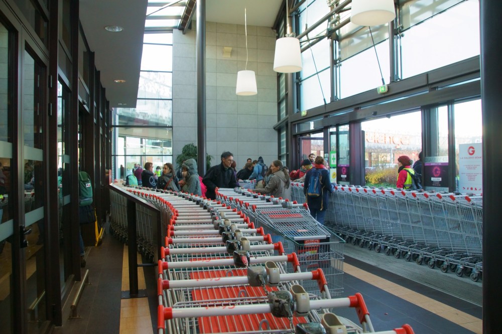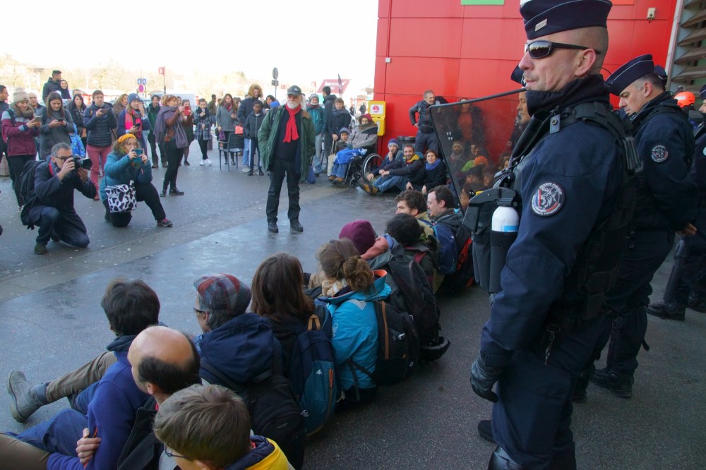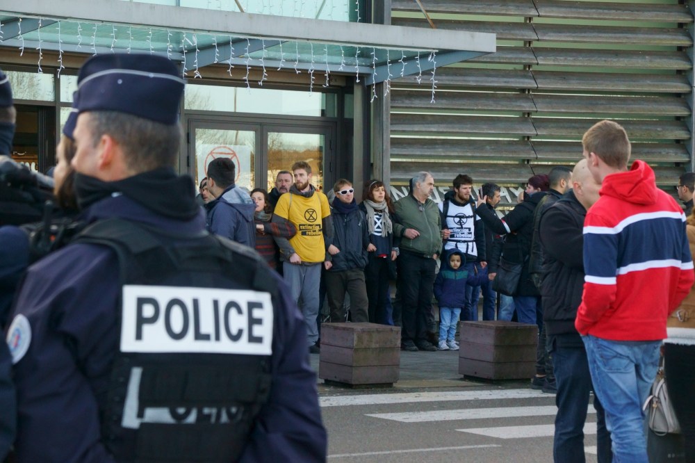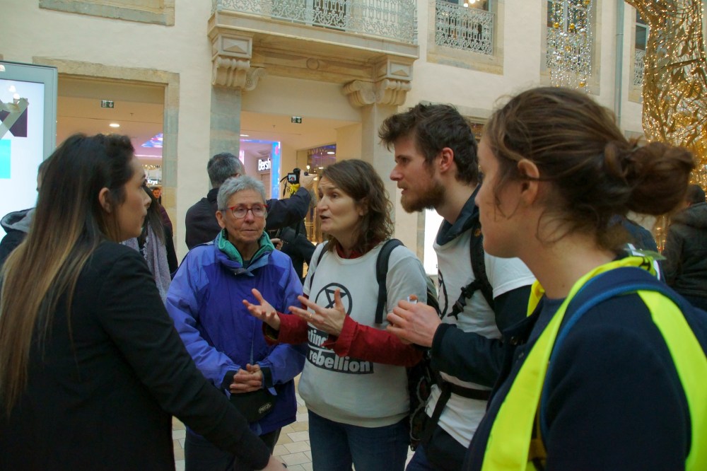 Les Organisations Non Gouvernementales Action Non Violente COP 21, Extinction Rébellion, Alternatiba, ATTAC et les gilets jaunes ont bloqué ensemble deux centres commerciaux à Besançon (25) samedi 30 novembre 2019 en réaction au Black Friday.