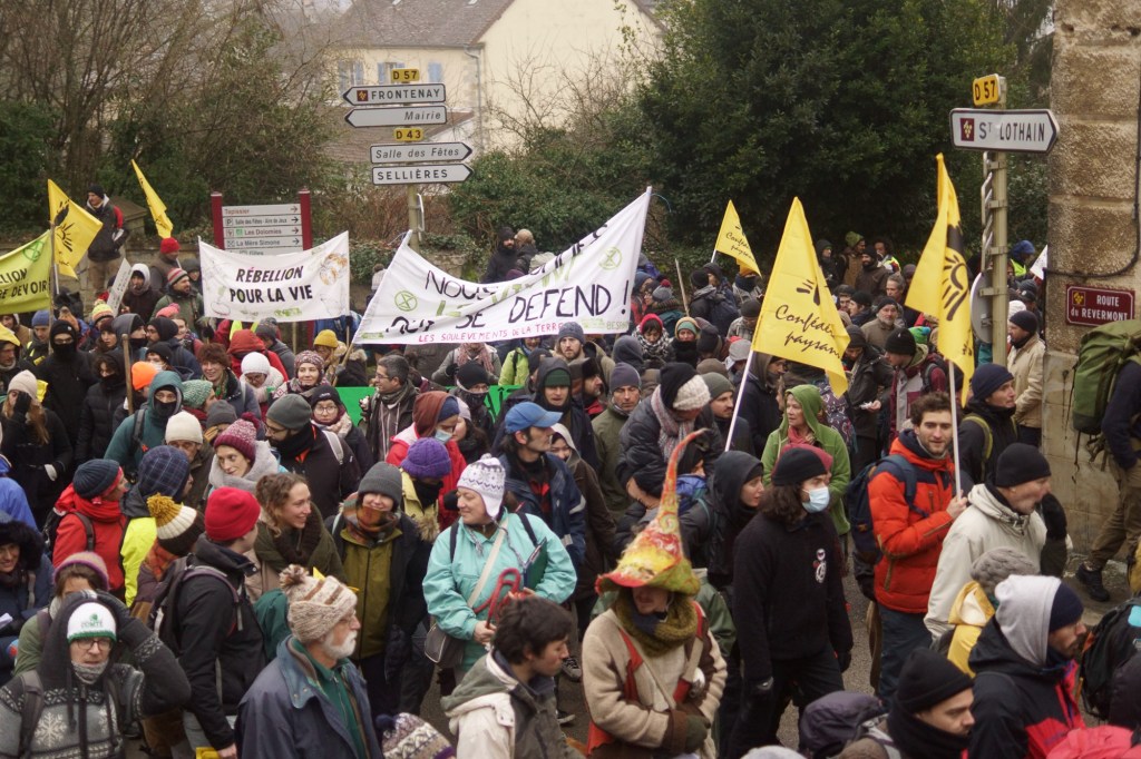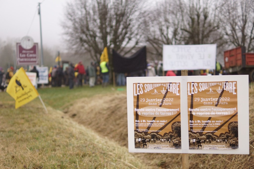 Manifestation des Soulevements de la Terre à Passenans (39) contre l’accaparement et la spéculation financière sur des terres agricoles.