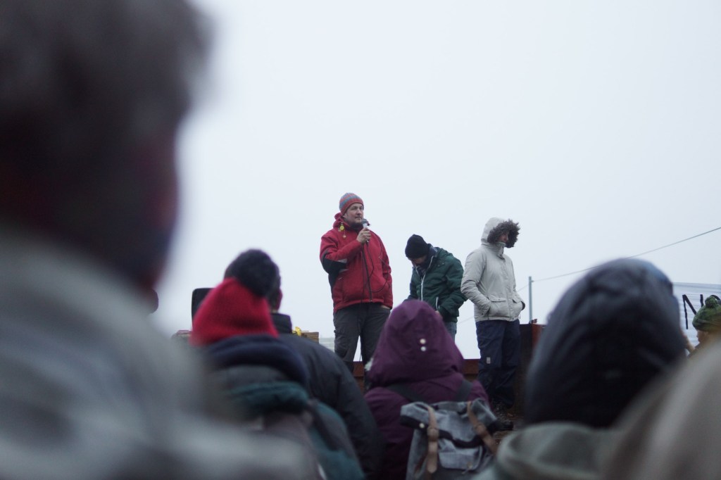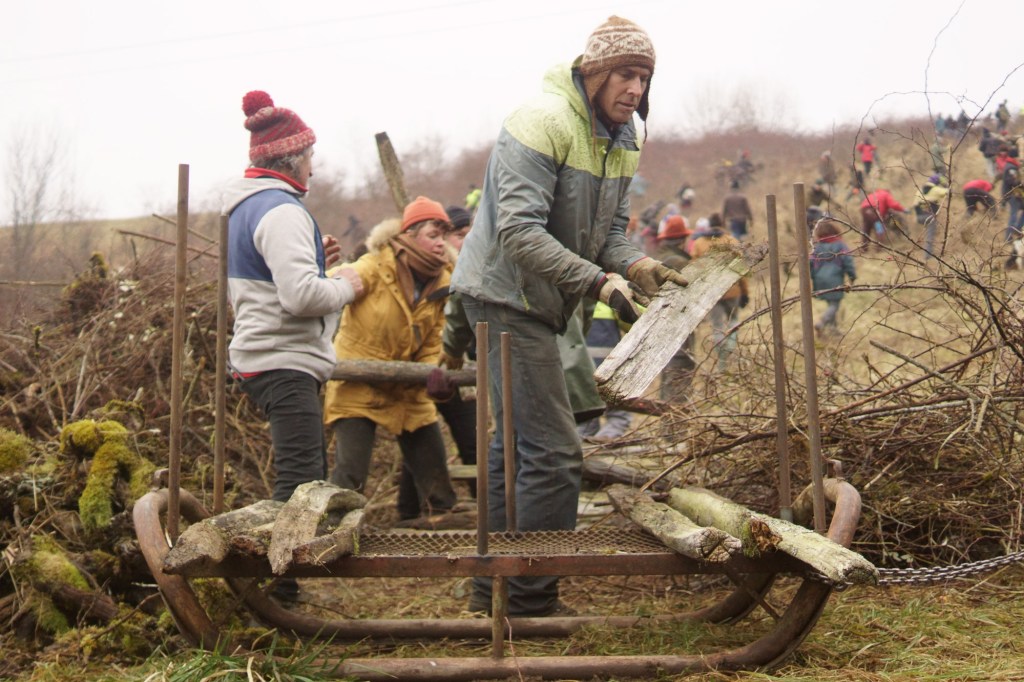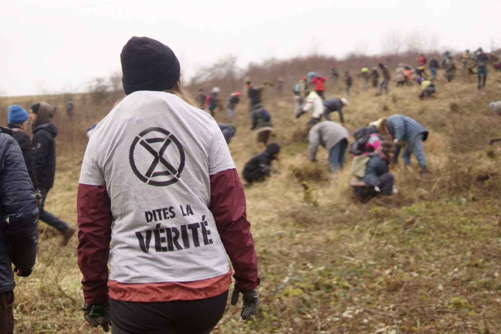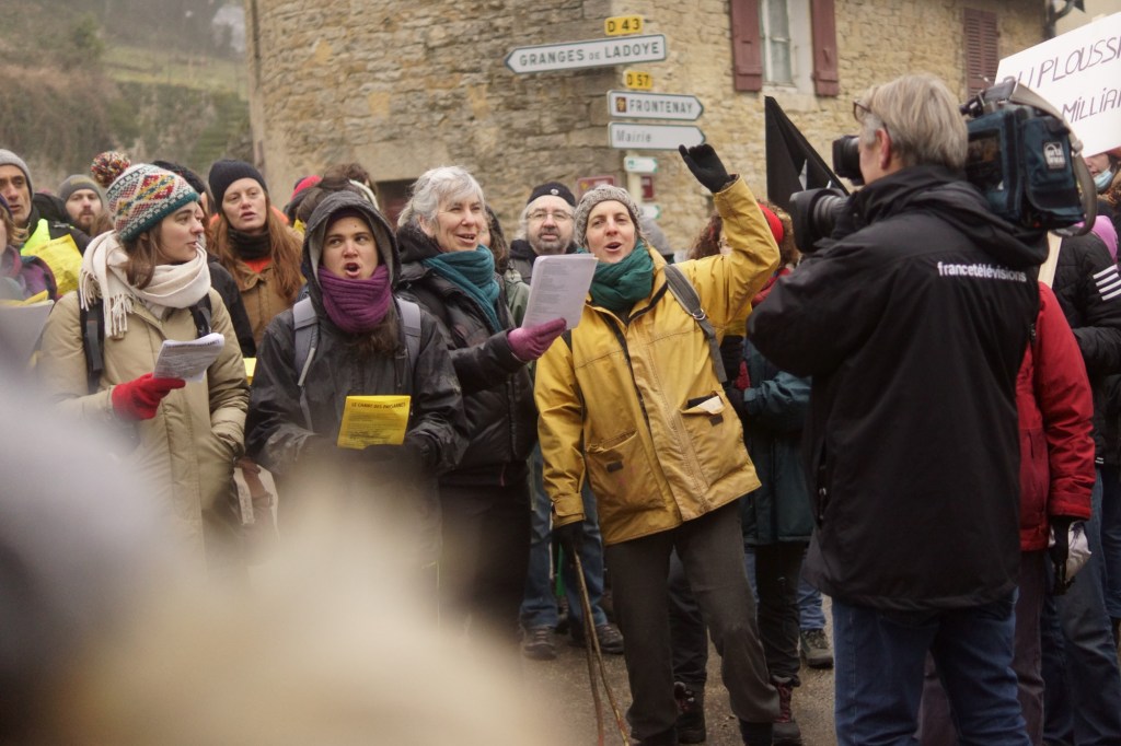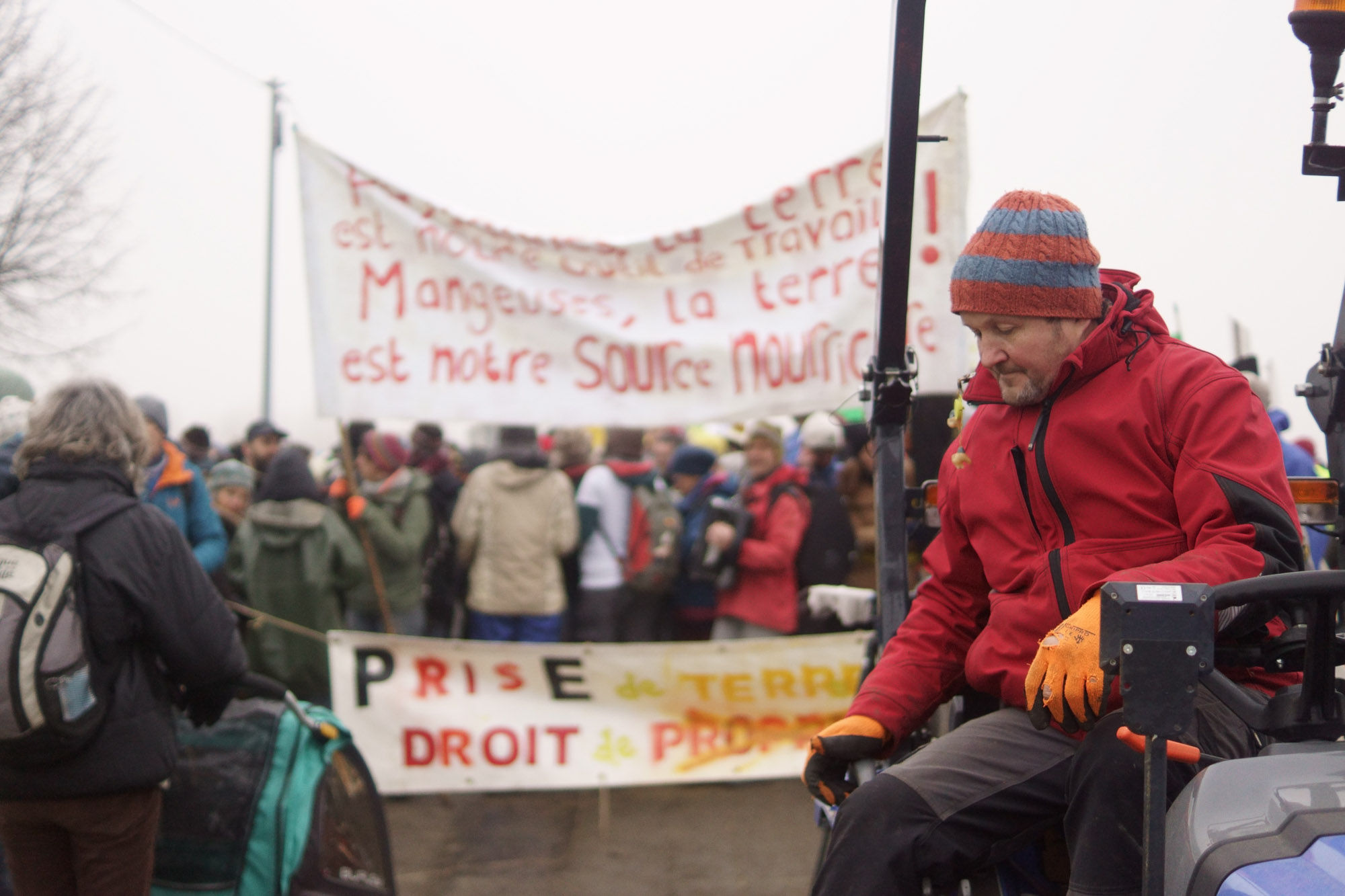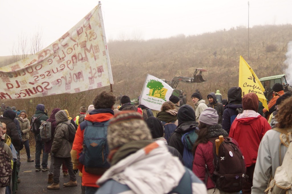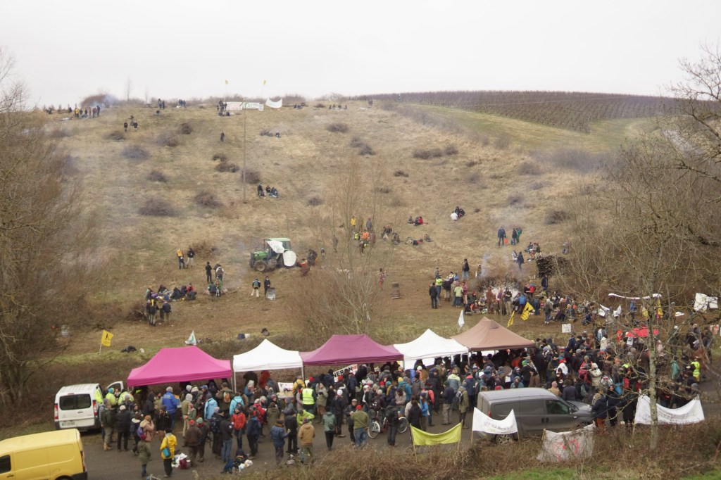 500 personnes ont manifesté dans le village puis investi un champ samedi 29 janvier. Cette parcelle était sujette à une spéculation financière et n’était plus utilisée pour de l’agriculture -et laissée à l’abandon- depuis 2008. Après avoir débroussaillé le terrain, le but est l’installation à long terme de jeunes vignerons.