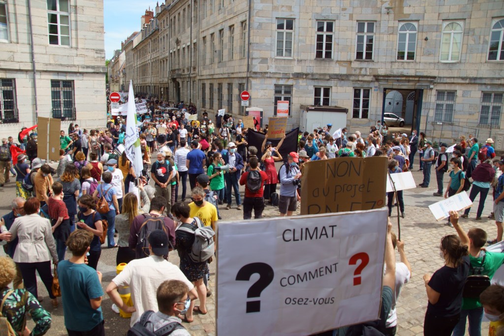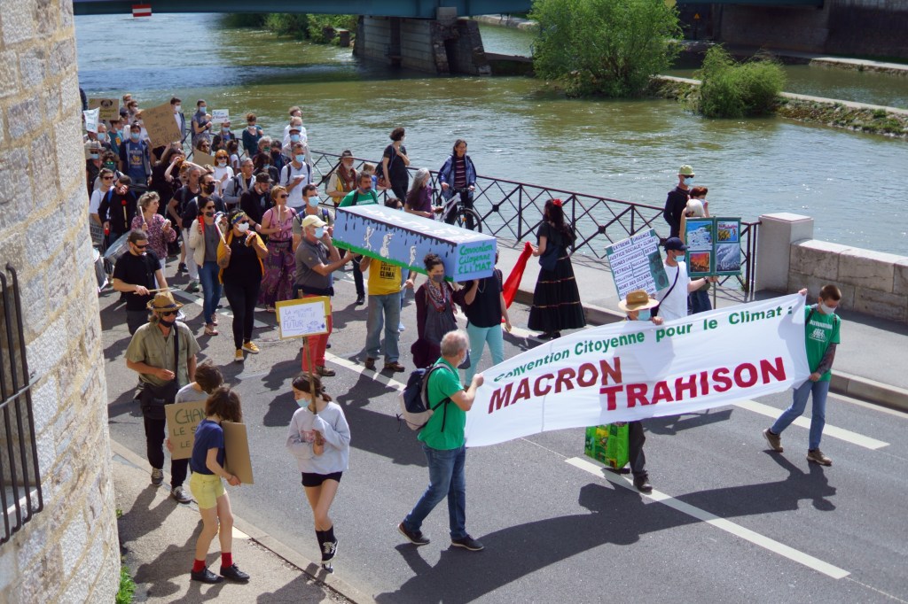 Près de 2000 manifestants étaient « plus chaud que le climat » à Besançon samedi dernier. Leur objectif : dénoncer la loi climat adoptée en première lecture à l’Assemblée nationale. En plus du cortège pour le climat conduit par les ONG Action Non Violente COP 21, Extinction Rébellion et d’autres, une vélorution s’est formée en fin de cortège. Une fanfare accompagnait la manifestation avec une danseuse. La manifestation s’est terminée derrière la mairie où un autre orchestre attendait.